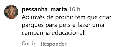 A campanha, no entanto, dividiu opiniões nas redes sociais. Enquanto alguns internautas apoiam a iniciativa, outros consideram a proibição exagerada e cobraram a criação de mais espaços pet friendly na cidade.