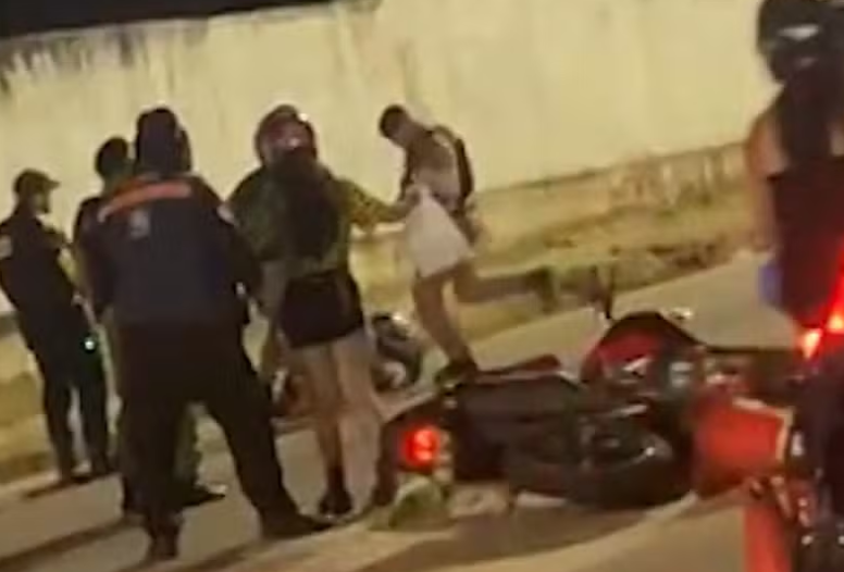 Além do motociclista, uma segunda pessoa que estava na moto também teria sido agredida por uma agente de trânsito com tapas no rosto, enquanto permanecia sentada no chão.