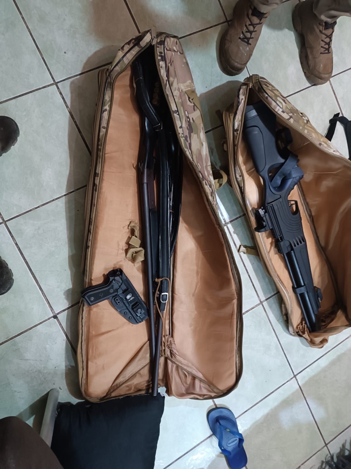 Ao todo, foram cumpridos dez mandados judiciais. Durante as diligências, as equipes apreenderam espingardas, pistolas calibre 9mm, munições e coletes balísticos. O grupo é apontado como responsável por diversos roubos contra comerciantes da região.