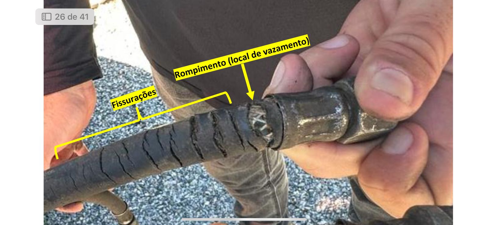 • Fissuras na mangueira de ar comprimido, essencial para a frenagem.